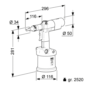- Capacidad de remachado en milímetros de M4 a M10