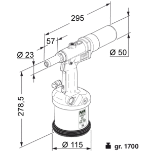 Posee sistema de aspiración de clavos y vaso recolector. Ideal para líneas de producción con alto volumen de remachado.